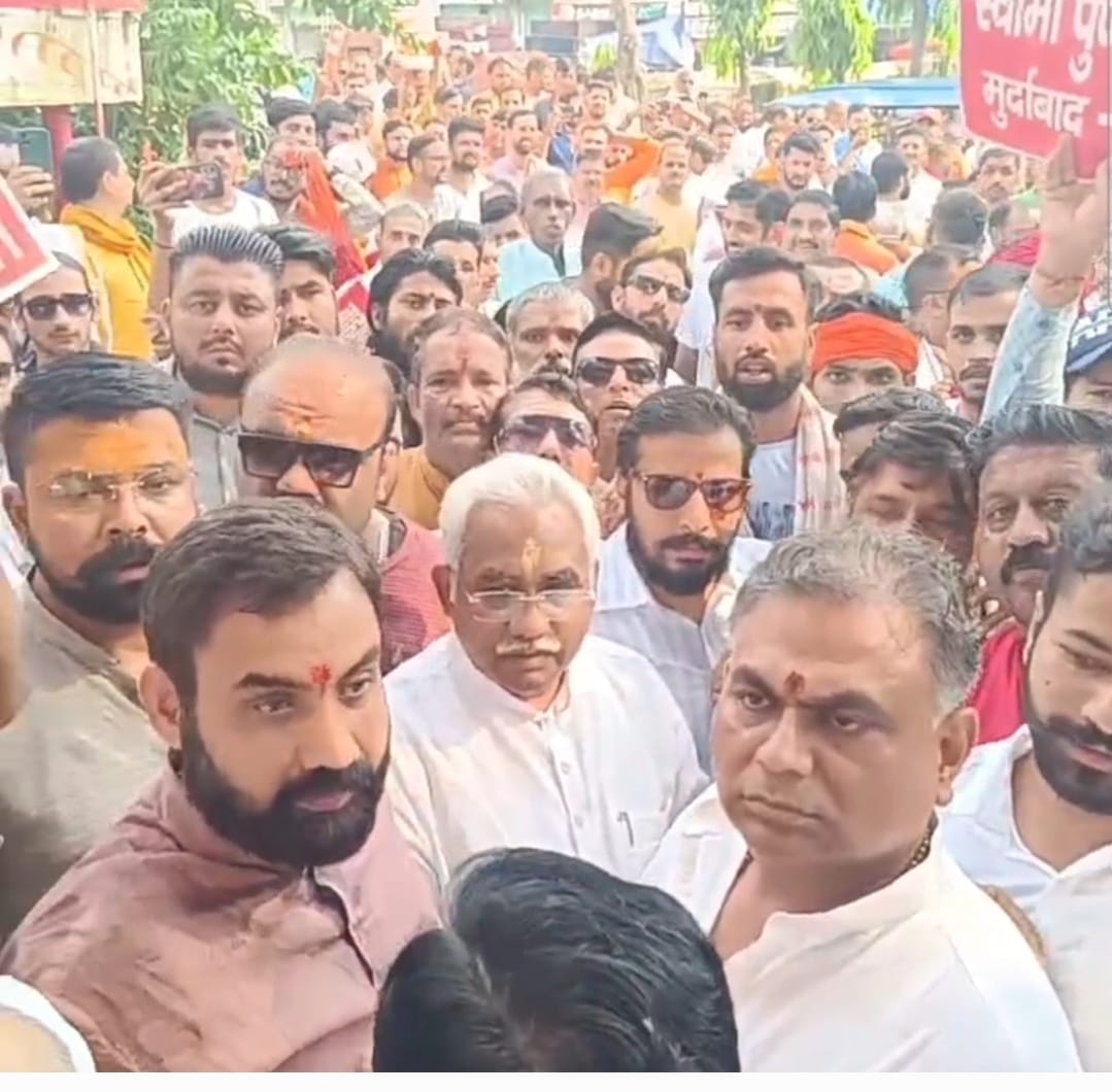 भागवत कथा के दौरान पंडितों के बारे में अपशब्द कहने पर हरिद्वार के ब्राह्मण समाज के लोग पूर्व मंत्री/विधायक मदन कौशिक के साथ थाने पहुंचे,,,