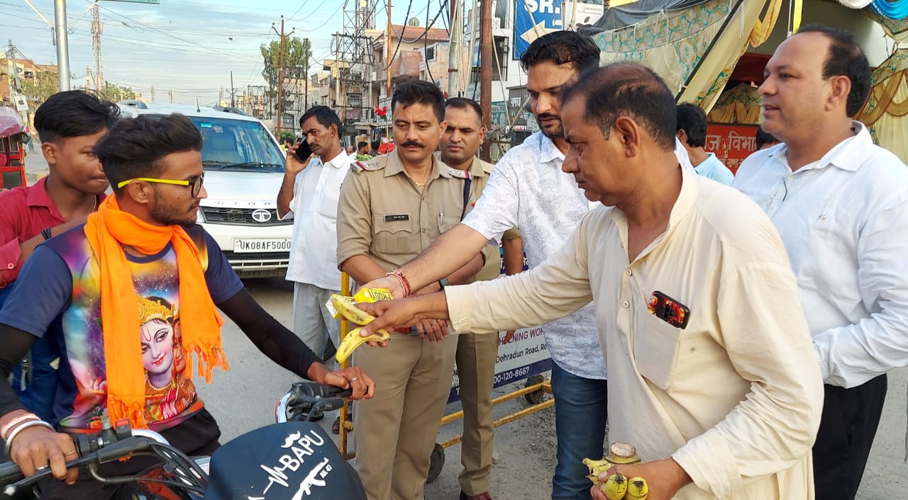 रामपुर चुंगी पर मुस्लिम समाज के लोगों एवं पुलिस प्रशासन द्वारा हरिद्वार से पवित्र गंगाजल लेकर गतंव्य की ओर जा रहे शिव भक्तों को फल एवं फ्रूटी वितरित की गई।गंगनहर कोतवाली इंस्पेक्टर ऐश्वर्या पाल ने शिव भक्तों को फल वितरित करते हुए कहा कि यह कार्य किसी पूजा से कम नहीं है और शिव भक्तों की सेवा करना बड़ा ही पुण्य का कार्य है।समाजसेवी रोबिन चौधरी व नईम सिद्दीकी एडवोकेट ने कहा कि कावड़ियों की सेवा करना आपसी भाईचारा तथा सौहार्द का प्रतीक है और इस कार्य में मुस्लिम समाज के लोग भी बढ़ चढ़कर हिस्सा ले रहे हैं।उन्होंने कहा कि पुलिस-प्रशासन जहां दिन रात सुरक्षा के कार्यों में व्यस्त हैं,वहीं शिव भक्तों की सेवा में भी पुलिस अग्रणी भूमिका अदा कर रही है,जो प्रशंसनीय है।इस अवसर पर चौकी इंचार्ज विक्रम सिंह बिष्ट,इमरान देशभक्त, रोबिन चौधरी,डॉक्टर जिलानी,अनिल बिष्ट,भूपेंद्र सिंह तेवतिया,लाल सिंह नेगी,रणवीर सिंह,यशपाल सिंह भंडारी,मोहम्मद इसरार,अब्दुल कुद्दूस,नसीर अहमद,जमील अहमद,अमित शर्मा,अमीर आदि मौजूद रहे।
