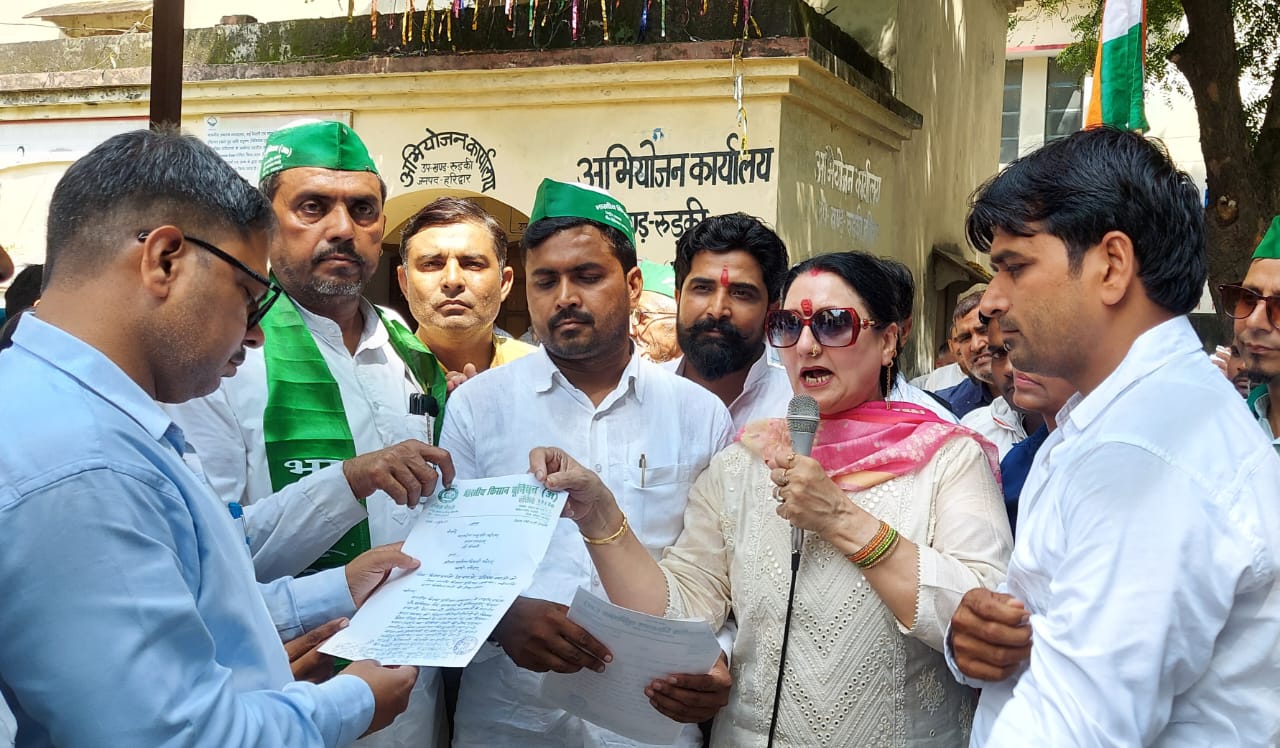 भारतीय किसान यूनियन अंबावत,महिला विंग की राष्ट्रीय अध्यक्ष श्रीमती रश्मि चौधरी के नेतृत्व में किसानों ने महामहिम राष्ट्रपति के नाम संबोधित एक ज्ञापन उप जिलाधिकारी विजय नाथ शुक्ला को सौंपा,जिसमें किसानों की समस्याओं से संबंधित विभिन्न मांगों एवं बेरोजगारी तथा बढ़ती महंगाई को रोकने की मांग ज्ञापन में महामहिम राष्ट्रपति से की गई है।श्रीमती रश्मि चौधरी व भाकियू अंबावत युवा विंग के राष्ट्रीय अध्यक्ष फरमान त्यागी एडवोकेट के नेतृत्व में नारेबाजी करते हुए किसान रैली के रूप में रुड़की कचहरी पहुंचे,जहां उन्होंने संयुक्त रूप से उप जिलाधिकारी विजय नाथ शुक्ला को अलग-अलग ज्ञापन सौंपा।ज्ञापन दिये जाने से पूर्व अपने संबोधन में दोनों किसान नेताओं ने कहा कि आज देश में भाजपा सरकार के तानाशाही रवैया के चलते देश का किसान बदहाली के कगार पर पहुंच गया है।देश बचाओ,संविधान बचाओ, किसान बचाओ कार्यक्रम को दिल्ली में ना होने दिया जाने को लेकर उन्होंने कहा कि राष्ट्रीय अध्यक्ष चौधरी ऋषिपाल अंबावत के निर्देश पर देश भर के समस्त जिला मुख्यालयों पर आज एक ज्ञापन दिए जाने का कार्यक्रम रखा गया था,जिसमें महामहिम राष्ट्रपति से किसानों की बदहाली,बेरोजगारी,महंगाई तथा राजस्थान में दलित छात्र की हत्या आदि कई मुद्दों पर महामहिम राष्ट्रपति का ध्यान आकर्षित कर संज्ञान लिए जाने की मांग की गई है।ज्ञापन देने वालों में योगेंद्र चौधरी,योगेश चौधरी,इंजीनियर हारून त्यागी,मोहम्मद शौकीन,कोमल कल्याणी महिला प्रदेश अध्यक्ष, तालीम त्यागी,सागर सिंह जिला अध्यक्ष,कुलदीप सिंह,देवेंद्र कुमार,राजेश,जय सिंह प्रधान,कंवर पाल, बबलू,सतीश,मोहम्मद इमरान प्रदेश सचिव,गौरव चौधरी,सुमन,उषा,लक्की,सोनम,नीतू,अंजू,सुनीता, प्रीति शर्मा,रेनू चौधरी आदि अनेक लोग मौजूद रहे।